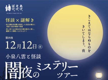 小泉八雲が松江尋常中学校へ通うために通っていた(と思われる)松江城付近と、八雲とセツが暮らした武家屋敷、八雲の怪談の舞台となったお寺(月照寺)など、見所いっぱいのツアーです。