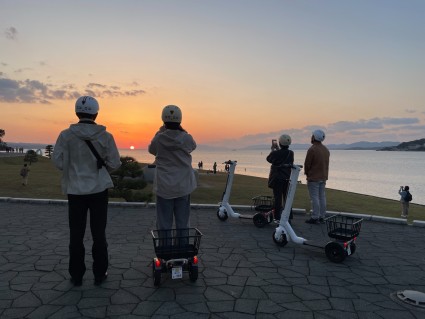 宍道湖に沈む夕日が美しい湖畔まで“ 立ち乗り三輪モビリティ” で楽しく移動